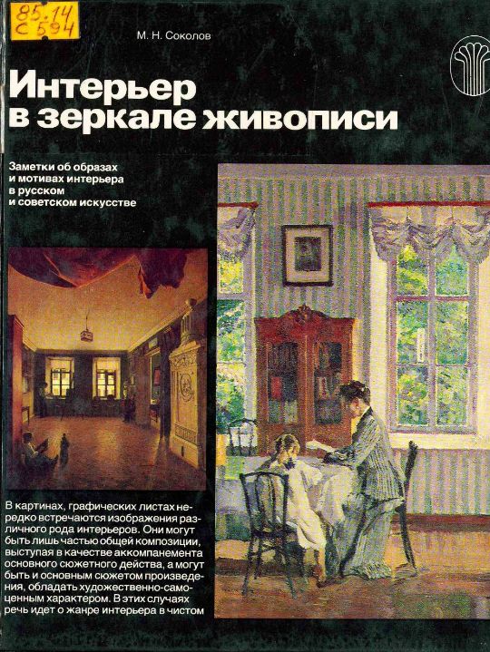 15. Соколов М. Н. Интерьер в зеркале живописи. Заметки об образах и мотивах интерьера в русском и советском искусстве : альбом / М. Н. Соколов. – Москва : Советский художник, 1986. – 228 с. : ил. – Текст : непосредственный.